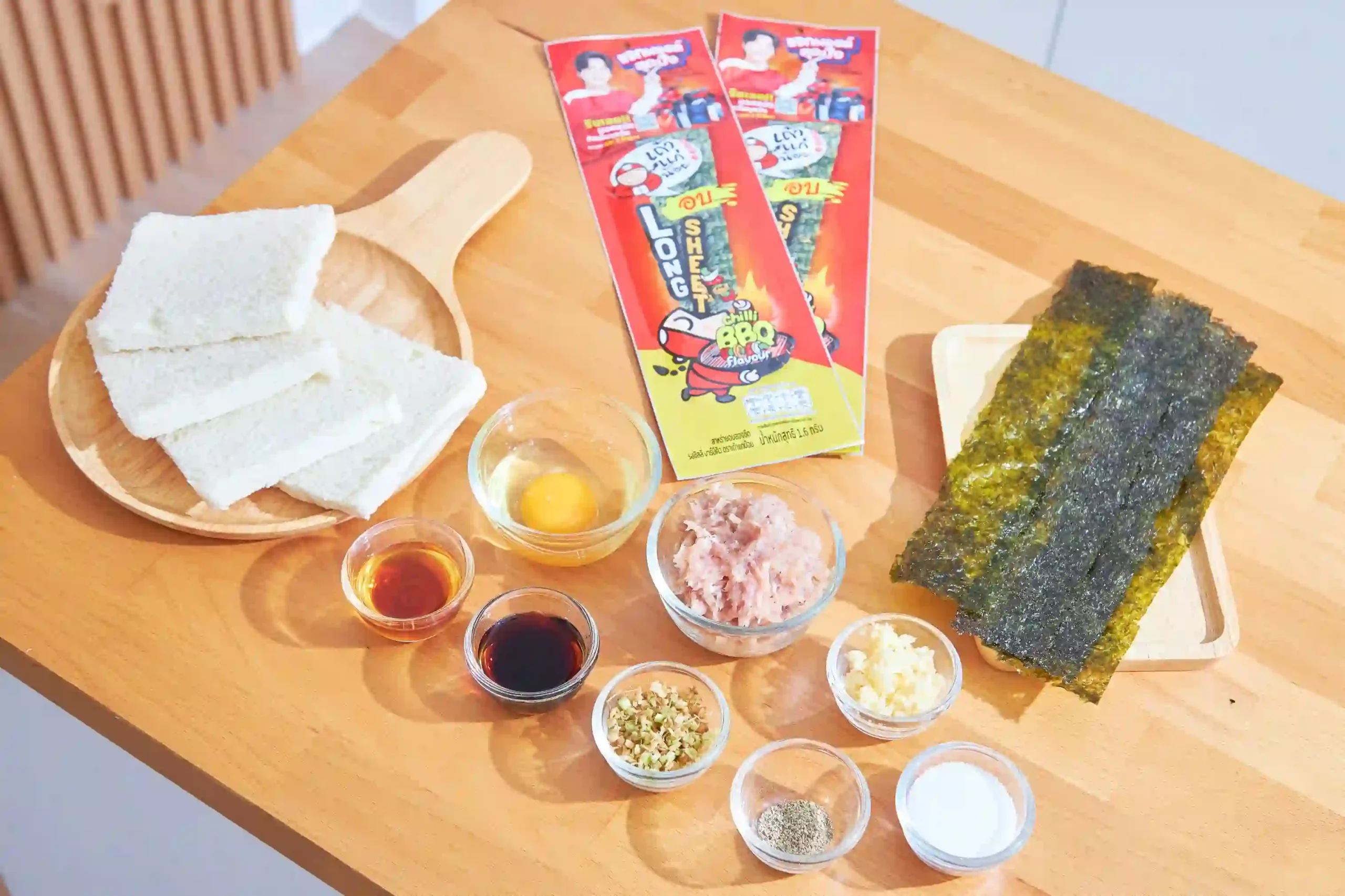 ขนมปังหน้ากุ้งสาหร่ายทอด