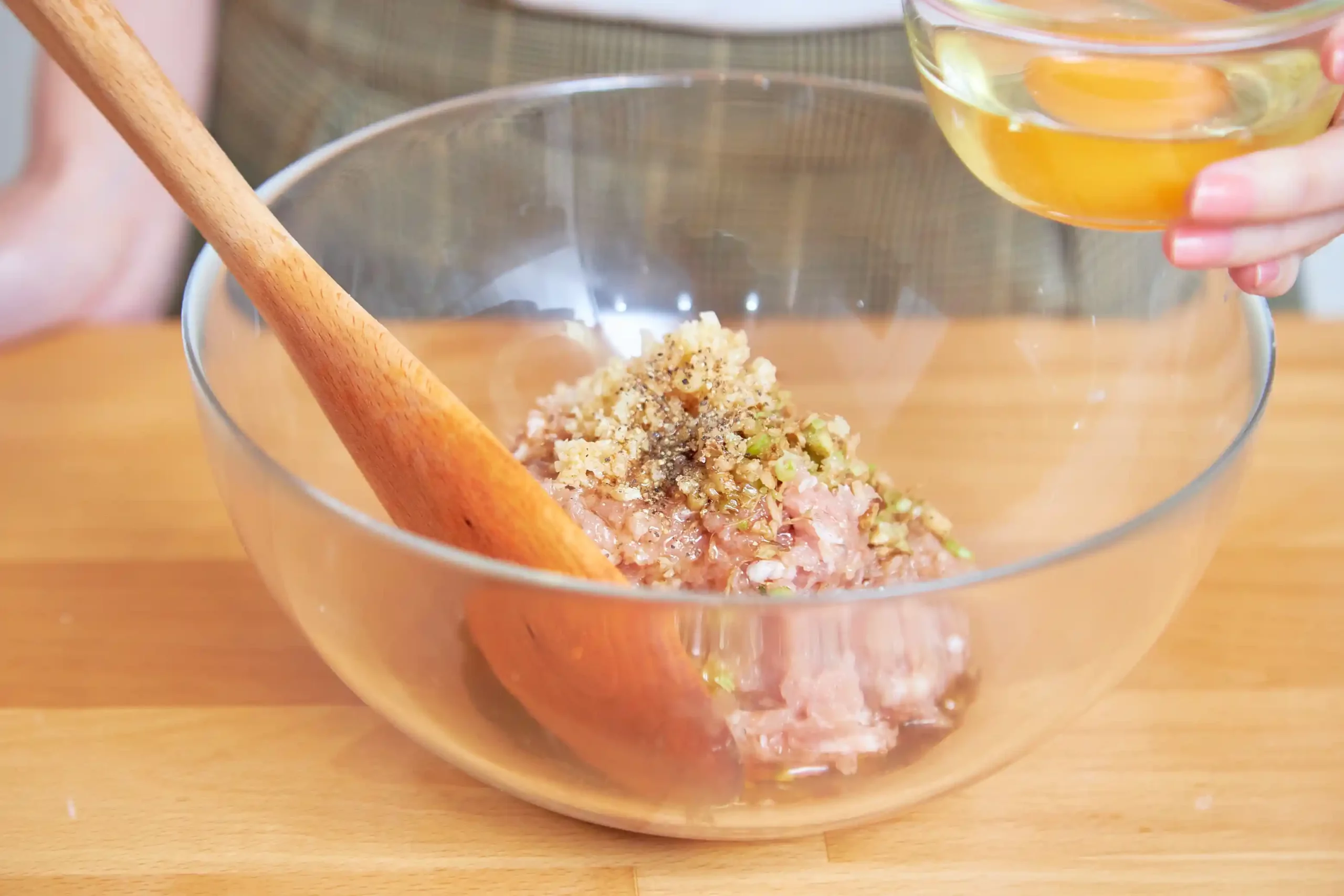 1. นำกุ้งขาวสับ ผสมกับไข่ไก่ รากผักชี กระเทียม ซีอิ๊วขาว น้ำมันงา พริกไทย แล้วคนให้ส่วนผสมเข้ากัน